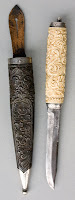Mønsteret i det nederste skaftet er innfløkt og detaljrikt, og uhyre drevent utført, av en knivmaker med stor rutine og som godt visste hvordan han ville ha det. Det skulle ikke forundre meg om han skar raskt og effektivt også.